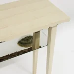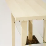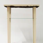 This table is made of birch wood with hidden bark underneath. In Sweden, the wood industry harvests a significant number of trees annually, transforming them into slender, squared pieces that may appear far removed from their original tree form. As they undergo this metamorphosis, they cease to look like trees and slowly become what we know as wood.