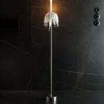 The solitaire in space enhances the ambience with a sensation of light. The monumental elevated point of light disturbs the surrounding surfaces with no unwanted reflections, instead weaving light into space.