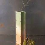 Form wise, the pieces rejoice in the aesthetics of the building load – bearing systems. Like a building system, they propose a bearer/carrier where plants can reside and become a living architectural element. Taking reference from biophilic design, the “LIFE CABIN” builds on the idea of accommodating plant life-forms in contemporary interiors. A joint system was developed especially for the pieces’ surface connections. The process of painting the surfaces was an experimental and performative one; it was ideated and accomplished uniquely for every piece in the dye house using a powder-coating technique.
