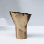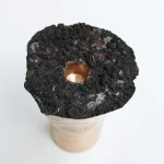The top part of the candlestick is formed of bronze in its rawest form and the body is formed of organic forms with a polished and veined surface. With the combination of these rugged and silky surfaces, it appears as an image that balances each other and as a remarkable piece for decoration compositions.