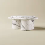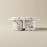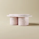 The Element Coffee Table, a part of the Element collection by Swiss designer, Vincent Mazenauer, embodies a synthesis of brutalist and neo industrial design lines. Crafted with different marbles, this coffee table juxtaposes special materials with a distinctive history, seamlessly blending antique with modern and contemporary. The design achieves a harmonious balance, marrying round contemporary shapes with the enduring presence of antique materials, symbolizing the delicate equilibrium between past and future in the world.