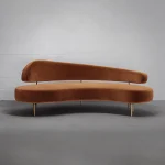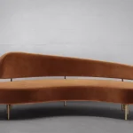 Velvet upholstered 3-seater sofa with lathed bronze or stainless steel legs and hardware. Available in Ivory, Ébano, and Terracota velvet upholstery options. Customizations available upon request.