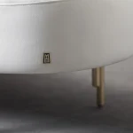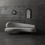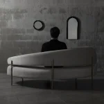 The SITIERA_01 sofa combines a modern, streamlined design with hardware accents that draw inspiration from the metal cast details on colonial-era church doors.