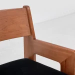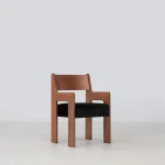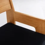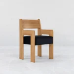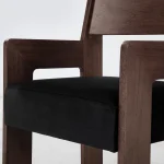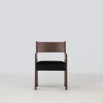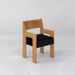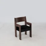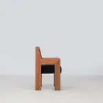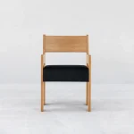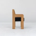 The Reka Armchair by Sun at Six spotlights contrasting widths. In designing the chair, we played with wide and narrow, thick and thin: the legs are wide and flat along one axis, thin along the other, while the seat cushion was elongated and fattened vertically. We designed this chair for comfortable multi-hour sitting sessions and used a slightly wider footprint and backrest for comfort. The wide panels emphasize the natural grain and luminescent sheen of the makata wood.