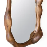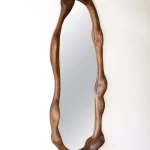 This organically shaped mirror by Alexander Knysch Studio is a captivating testament to artisanal craftsmanship, featuring a meticulously hand-shaped frame that celebrates the artistry and precision of traditional woodworking techniques. The flowing, natural contours of the design highlight the rich texture and grain of premium-quality walnut, enhanced by a luxurious hard-wax oil finish that provides a smooth, satin sheen while ensuring lasting durability.