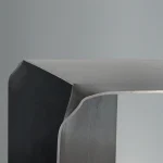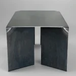 This piece was designed by Paul Touillon from a single sheet of steel, folded on both sides to elevate what then becomes the table top. A slight twist of the side panels inwards gives the object its desired steadiness and transforms the metal into a still, elegant piece of fabric. Each steel sheet comes with its own manufacturing defects, giving it its unique identity. Appearances may therefore vary compared to the displayed pictures.