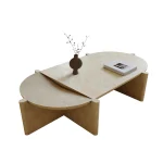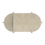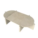 Arkhe No. 1 coffee table in oval version marries functionality with refined artistry. Hand-carved from blocks of unfilled travertine, the table’s raw textures and subtle imperfections evoke the weathered stone of ancient ruins. Its minimalist geometry and grounded posture create a serene dialogue between object and space—a quiet monument for the modern home.