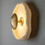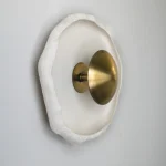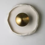 This piece is handmade and built from porcelain and brass. LED light.