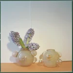 Each vase s hand blown and one of a kind. Slight color and size variations might occur. Hand wash only, avoid microwaves, and hot liquids. Handle with care 🙂