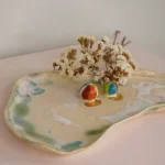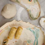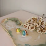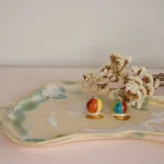 Each piece is lovingly handcrafted by Hania Jneid, carrying within it the spirit of a child’s imagination and the reverence of traditional craftsmanship. The organic shapes, joyful colors, and gold-kissed imperfections speak of a world where laughter meets ceremony, where art and function intertwine at the table.