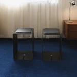 Stool made out of raw steel with a transparent poliurethane lacquer that protects the piece from corrosion.