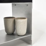 Each table is crafted in Germany from solid 5mm aluminum panels — sanded to a soft, even sheen that reduces fingerprints, stains, and scratches. The result is a timeless piece that balances industrial precision with artisanal sensitivity, designed to age beautifully and develop a subtle patina over time.