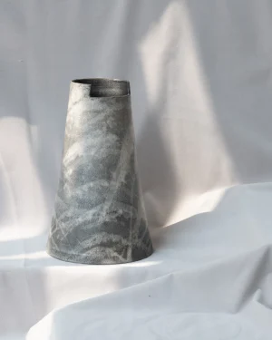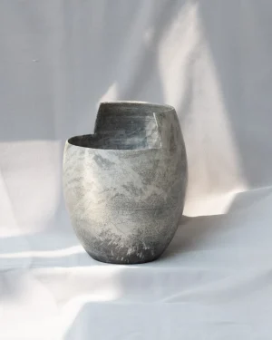Characterized by clean cuts, the clay is literally sliced by the potter himself. The design is minimal, inspired by Japanese aesthetics the birthplace of the Raku technique used here.