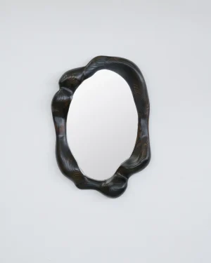 Free shippingSculptural Wavy Mirror In Charred Oak