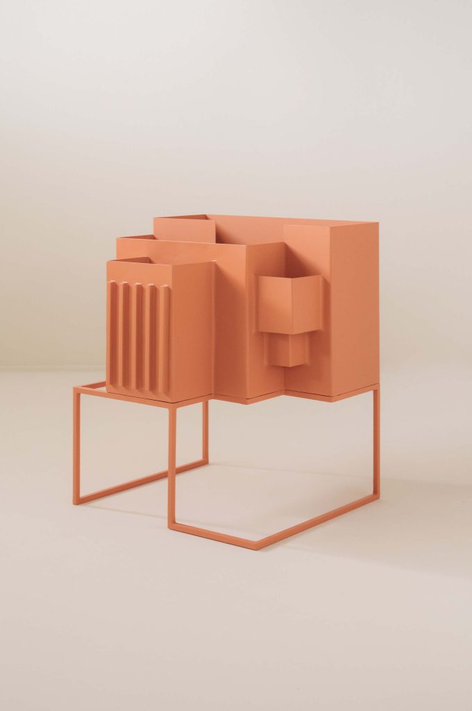 BRUTANTES Presents a series of functional sculptural objects created from the mixture, abstraction and transmutation between everyday artefacts and brutalism, in conjunction with the underlying intention of creating a utilitarian object. The selection of the orange colour as a symbol of renunciation, and the use of metal as the only material reflect the homogenization as a norm to be in complete comfort.