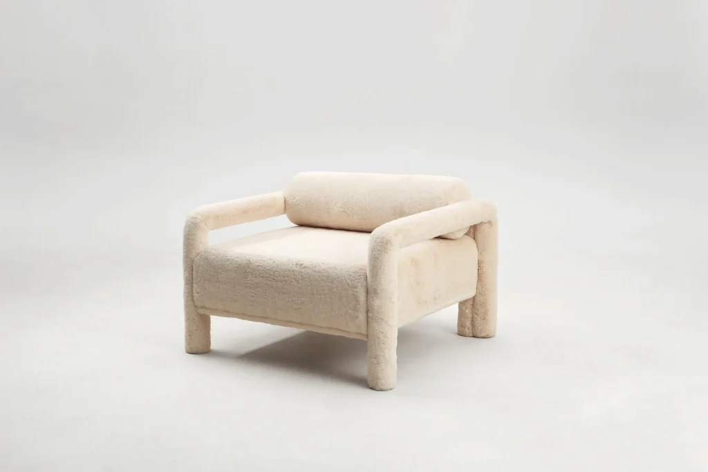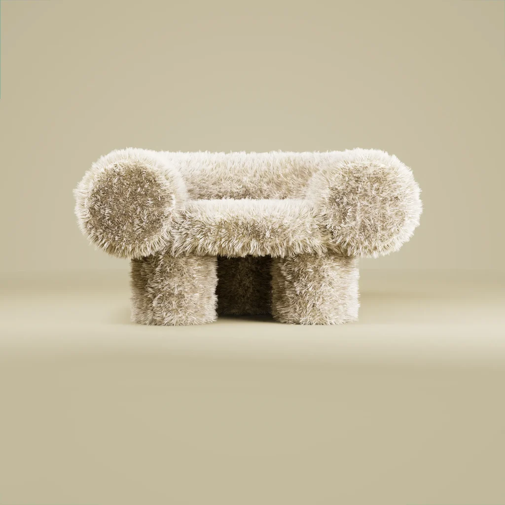 The Mineral Yeti Armchair by Swiss designer Vincent Mazenauer unites contemporary design with natural inspiration. Upholstered in luxurious faux fur from Misia Paris, it radiates texture and warmth while embracing bold, unconventional form. A striking statement piece, it captures the expressive essence of eclectic design.