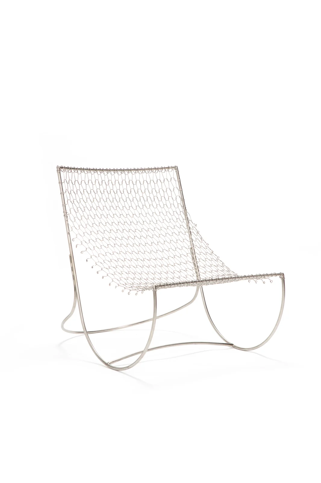 This seating series uses stainless steel wires in a knitted structure inspired by textile stockinette knitting. Individually flexible yet collectively strong, the interlocked loops form a resilient, cushion-like surface without the need for welding. Merging softness with structural innovation, it represents a new era in metal chair design.
