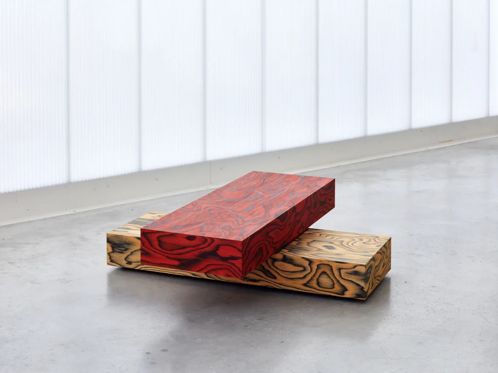 This debut piece by Curtis Bloxsidge pairs knit texture with minimalist jarrah timber. The table appears to float, shaped by sharp angles and a sense of controlled mass. A solid cubic base anchors the form, while a square knitted inlay by 2am close adds texture and softness to the clean geometry.