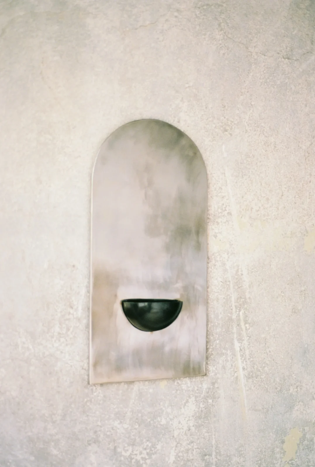 The Mirror of Simple Souls by COSEINCORSO draws inspiration from medieval stoups found at church entrances and beside Bรฉguinesโ beds. A hand-brushed stainless steel plate creates a softly blurred reflection, while an iron half-sphere functions as a small container or an empty spiritual vessel. The piece balances ritual, reflection, and quiet symbolism in a contemporary form, aligning with contemplative wall mirror design and themes explored in new medieval interiors.