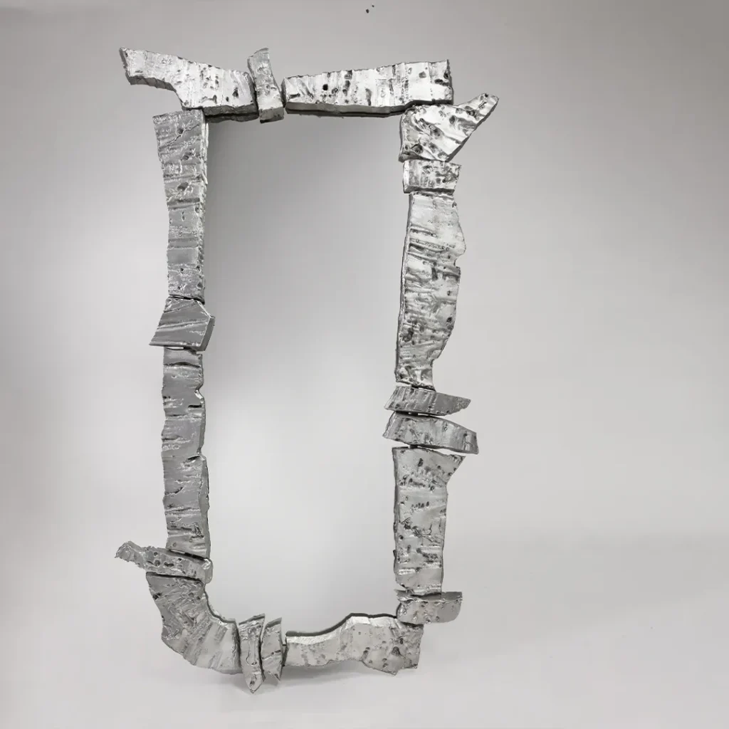 Mi-RR 13 by Studio Speculo is an aluminum object mirror defined by an otherworldly transformation of the classic standing mirror. Its sculptural frame suggests a moment of cosmic shift, blurring the line between functional reflection and abstract form.