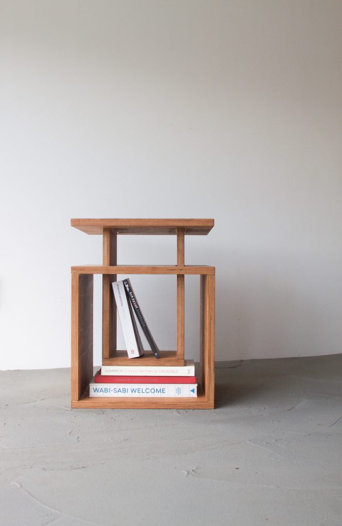 This space-optimizing side table features an adjustable height top and multiple negative spaces for book storage throughout its structure. Books stored beneath the movable top can actually change the table’s height, creating a unique interactive storage system. The versatile design allows personalization with loved objects and books while maximizing functionality in compact living spaces.