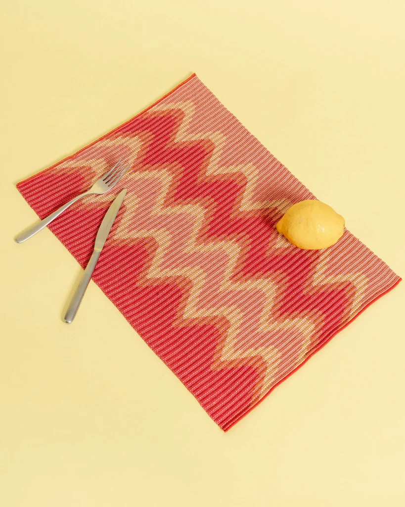 Build from the table up, starting with coral and pink placemats that feature organic, ikat-inspired patterns. Mix materials boldly – pair glossy ceramics with hand-blown glass pieces in complementary brights. Introduce asymmetry through pieces like the Wavy Lady dish and create depth with varying heights. Modern candleholders add warmth while sculptural vases invite natural elements to the mix. The magic lies in the controlled chaos – each piece should serve a purpose while contributing to the table’s creative spirit. This isn’t about matching sets but about curating pieces that spark conversation and make the act of dining an experience worth lingering over.
