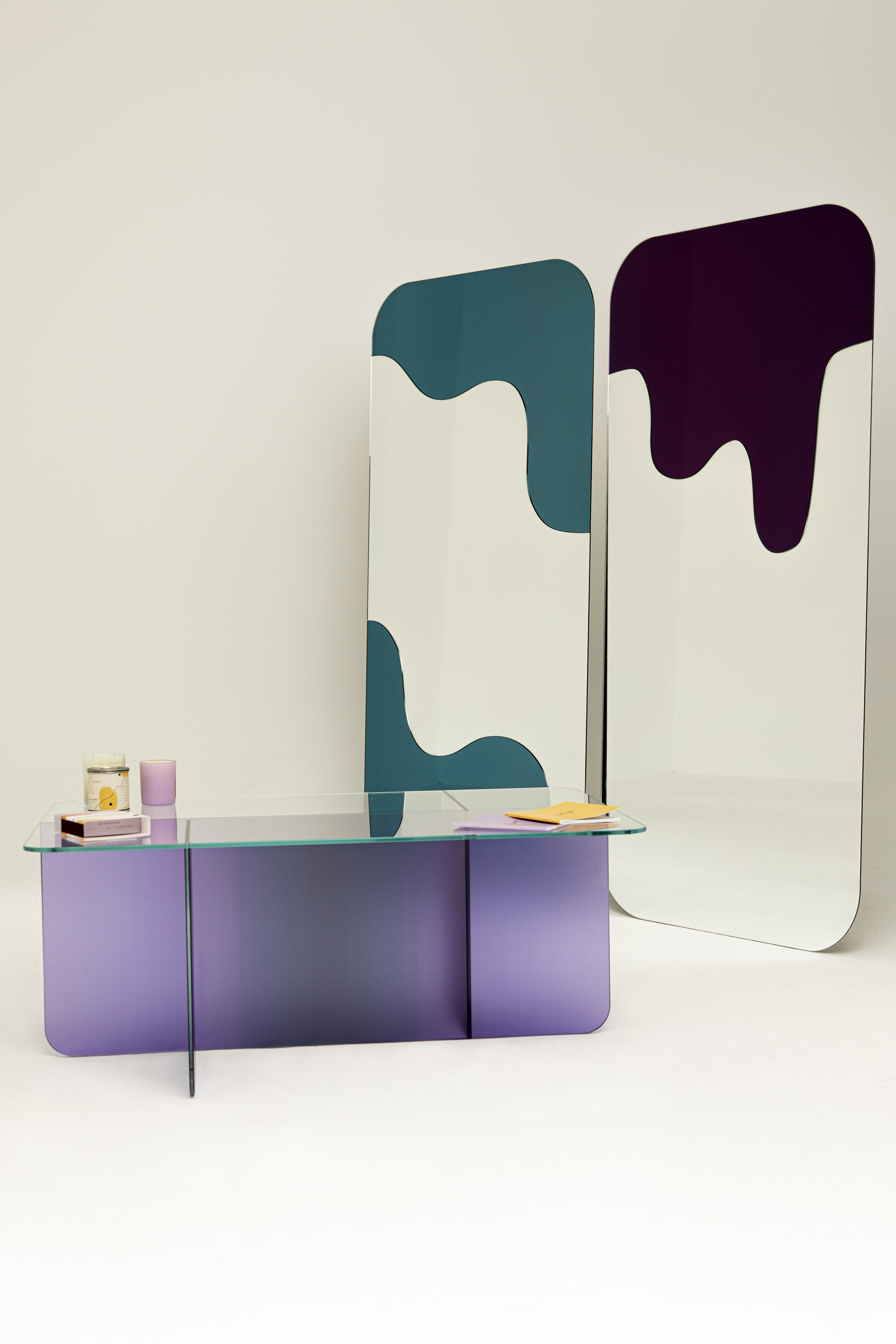 The Hvyli mirrors by oitoproducts feature melted, wavy forms that reflect a global design trend shaped by contemporary technology. Each mirror is framed in solid wood, creating a strong, monolithic structure that protects the glass while adding sculptural depth. Designed as versatile accents, they bring movement and character to living rooms, bedrooms, and entryways.