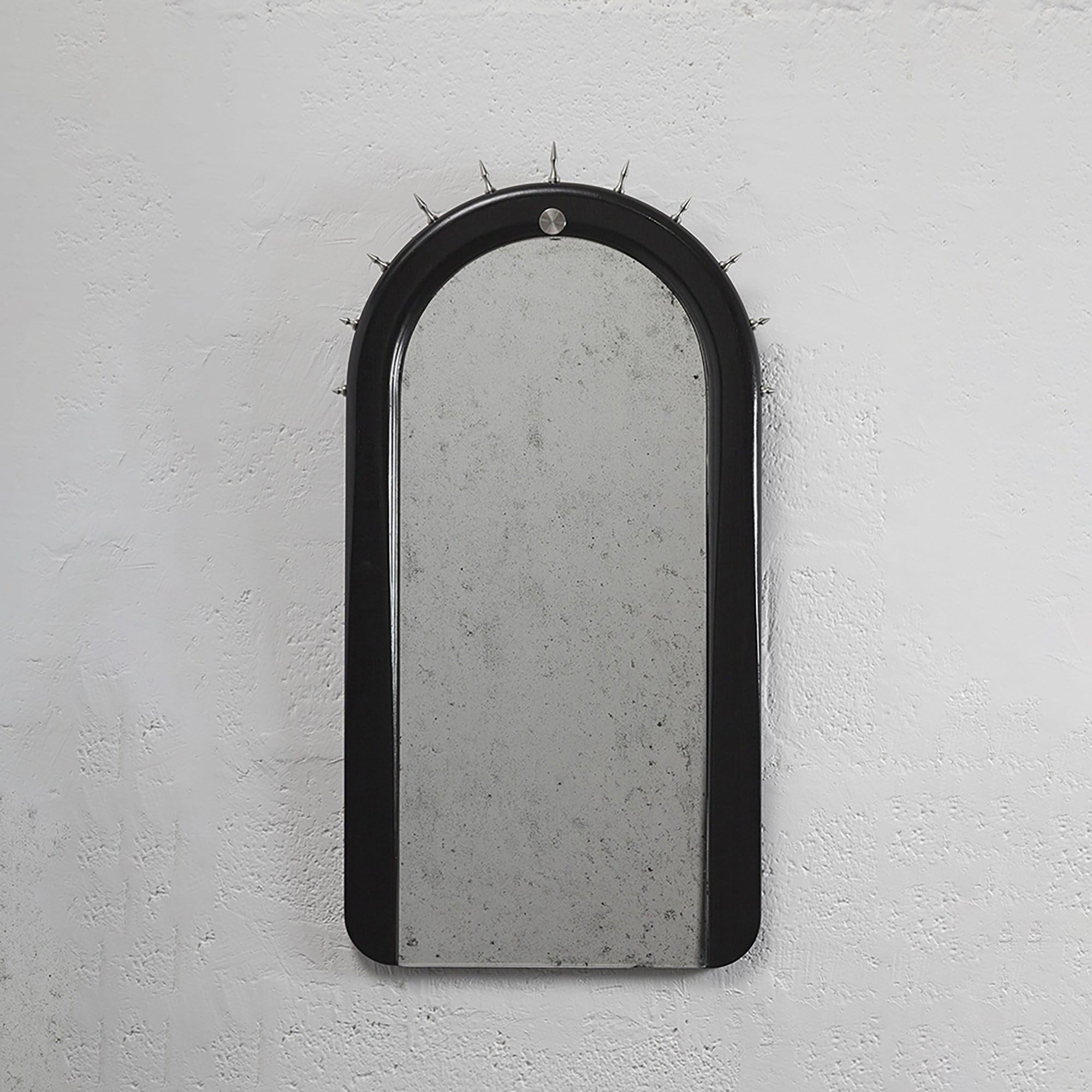 The mirror by Boo Design Studio draws on the geometry and symmetry of Art Deco, filtered through a restrained, contemporary lens. Crafted in metal, its sharp lines and ornamental restraint echo the visual language of historic jewelry, translated into a modern object of reflection. The piece sits comfortably within the broader world of mirrors that balance cultural memory with precise, functional design.