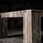 Coffee table Contemporary table Designer table durable stone elegant surface Living Room luxury stone Minimalist Table modern centerpiece modern decor Natural stone natural veining neutral palette no age NO AGE STUDIO polish polished travertine rectangular coffee rectangular coffee table rectangular stone Romanticism Sculptural table silver travertine Silver travertine coffee table silver veining Stone stone coffee timeless stone Travertine Travertine coffee table travertine slab travertine table