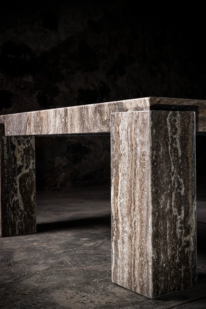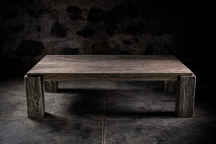 Coffee table Contemporary table Designer table durable stone elegant surface Living Room luxury stone Minimalist Table modern centerpiece modern decor Natural stone natural veining neutral palette no age NO AGE STUDIO polish polished travertine rectangular coffee rectangular coffee table rectangular stone Romanticism Sculptural table silver travertine Silver travertine coffee table silver veining Stone stone coffee timeless stone Travertine Travertine coffee table travertine slab travertine table