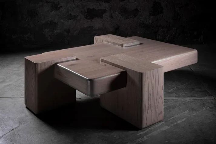 The Solid Oak Square Post-Modern Coffee Table by No Age Studio features clean lines and a bold design, crafted from high-quality solid oak. Its minimalist square shape and modern aesthetic make it a striking centerpiece, perfect for adding sophistication to any contemporary living space.