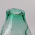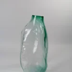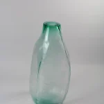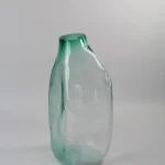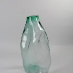 The 105-ltr forms are shaped using a fireproof fabric mold, the effect of which is clearly visible in their patterned exterior, where indentations and stitches punctuate the surface of the glass. The project combines the smooth, elegant aesthetic of the glass with the more traditional, time-worn visual of woven cloth. While outer seams may appear to hold the forms together, the effect concludes at the neck of the objects, where fabric gives way to polished glass.