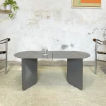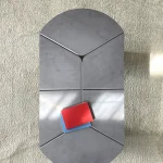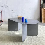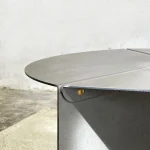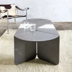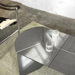 The “120+” table was born from the idea of developing an object starting from a sheet of metal, folding it and assembling the laser-cut parts together. The decomposition of the shapes into geometric elements allows the combination of different finishes and color combinations in the same object.