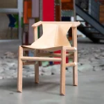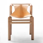 Environmentally friendly materials are chosen, like natural vegetal cognac leather, wood from sustainable forests of Patagonia and all the finishinga are based of wax – oil products, applied by hand. The chair was launched at ICFF fair in 2019 and Wanted design + ICFF 2022 during the New York design week.