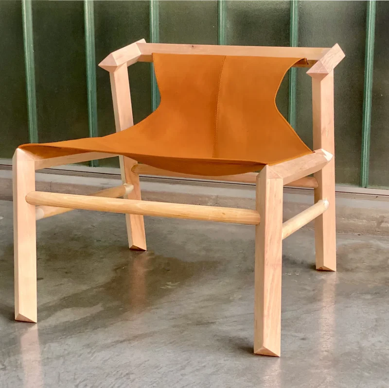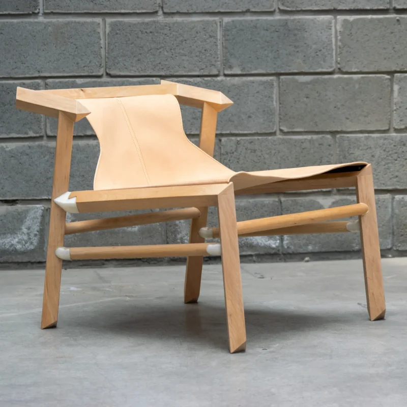 The Lounge arm chair 1908 was launched at the ICFF – Wanted design fair in 2019, during the New York design week. Each one of these chairs are made in the espina corona workshop under slow made standards and with ecological awareness. The design language combines traditional and modern techniques, 3D printed joints, digital fabrication and artisan processes. Environmentally friendly materials are chosen for the construction, like natural vegetal cognac leather, wood from sustainable forests of Patagonia and the finishing is based of wax – oil products, applied by hand.