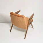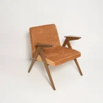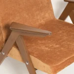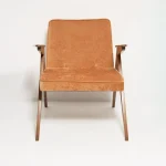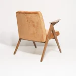 The Bunny Armchair is a celebrated icon of Polish design from the PRL period, originally crafted in 1962 by renowned interior and furniture designer Jozef Marian Chierowski. Produced at the Lower Silesian Furniture Factory in Świebodzice, this armchair exemplifies the elegant simplicity and modernist sensibilities of the era. Featuring a comfortable upholstered seat paired with a gently curved wooden backrest, its organic shape reflects the characteristic style of 1960s design. Ergonomically crafted, the Bunny Armchair prioritizes user comfort while maintaining a compact footprint, making it ideal for contemporary apartments. Professionally renovated to pristine condition, this chair can also be customized in alternative wood finishes and fabric colors, offering a perfect blend of historic charm and modern functionality.