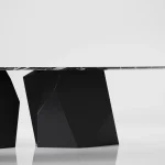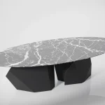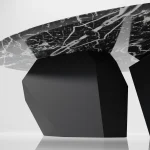 Supporting a sumptuous, curved table-top, Kronos is made beautiful in several striking marble finishes marble and mirror-polished stainless steel in gold or silver.