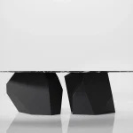 An irregular, rock-like configuration splits apart to form the base sections for this coffee table. Each structure echoes the other’s form, emphasising where they were once joined together