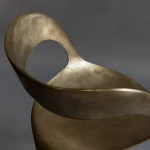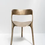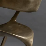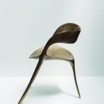 The chair, with a curved and ergonomic design, adapts to the natural contours of the body, promoting a feeling of comfort and relaxation. The legs and structure of the chair are made of cast bronze, a material that can take any desired shape, achieving a three-legged design, which within its complexity portrays the composition