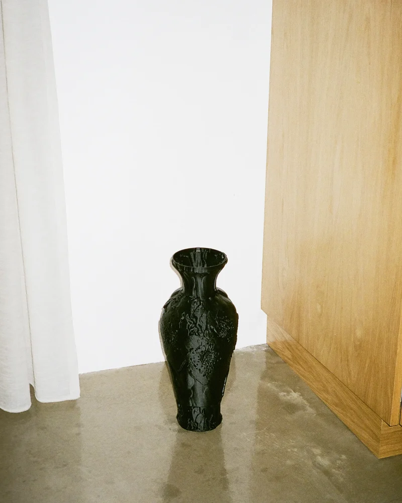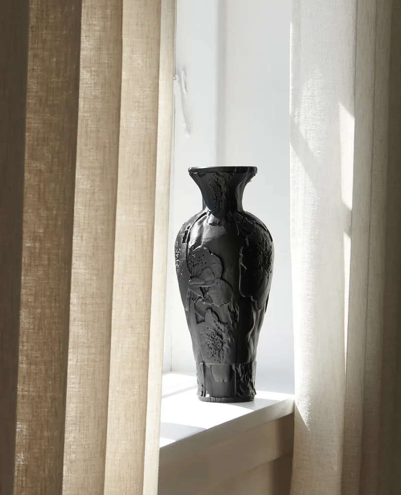 3d printed 3d printed container 3d printed decor 3d printed vase 3d printed vessel 3d printing Black vase Classic contemporary contemporary vessel Decorative vessel entryway decor Gifts for Lovers Hallway Hallway decor Midimalism Recycled recycled plastic vase Romanticism Textured & Tactile Gifts textured vase Timeless timeless vase Vase Vessel