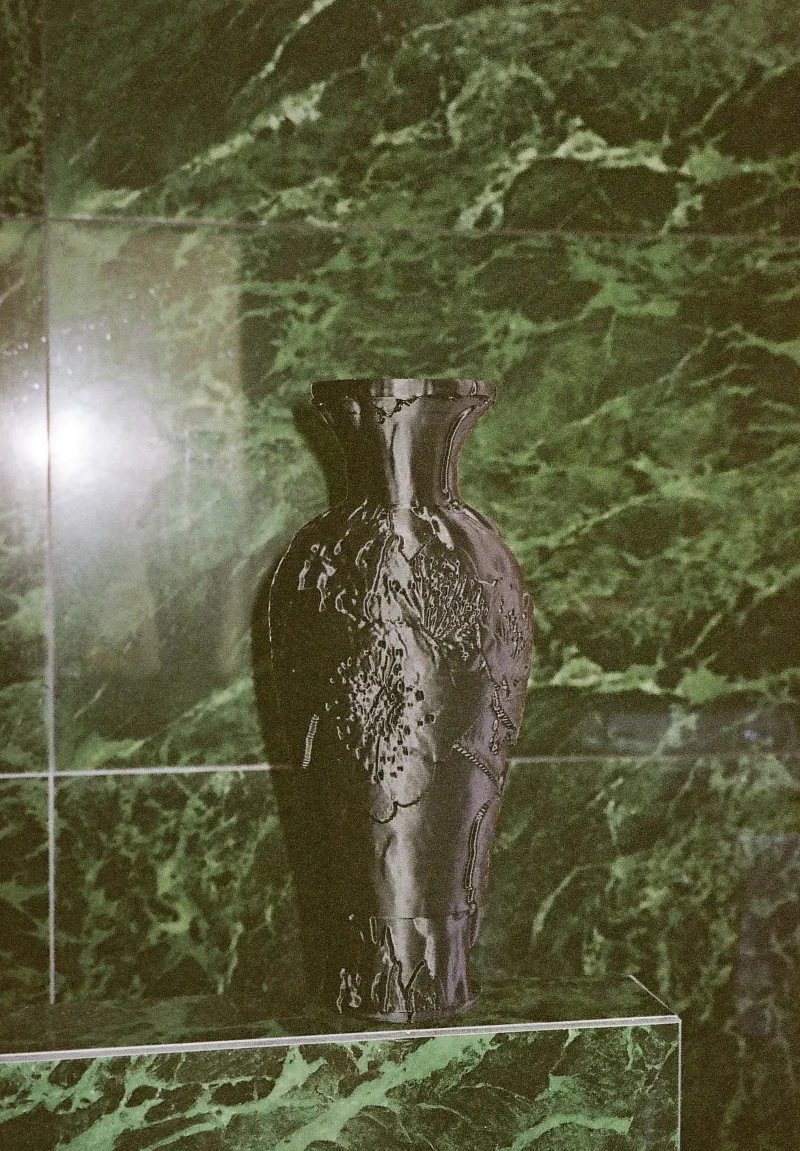 This is a statement piece for the center spotlight by 91-92. Inspired by the iconic Meiping shape from the Song dynasty (960-1279), the Vase with Three Plum Blossoms uses three displacement plum blossoms as the surface embellishment, creating a surreal visual stimulation.The Vase also exhibits how 3D printing can bring the old-time classy back to today, using recycled material.
