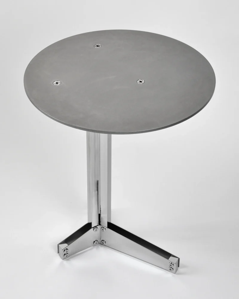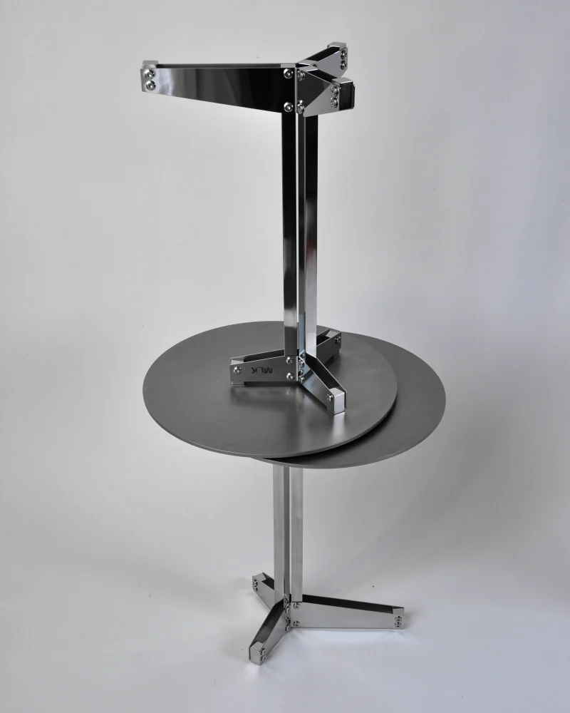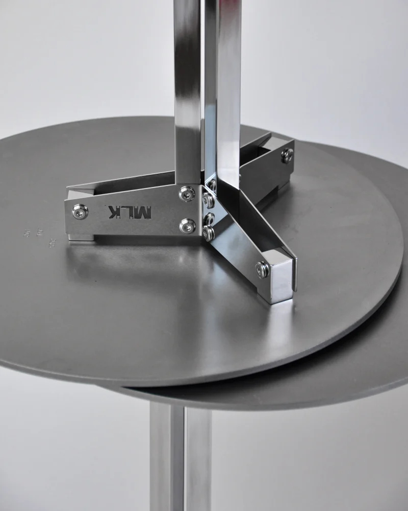 The design of this lamp gave rise to other creations as well as the 'sandwich design concept'. The insertion of assembly elements between two sheets of metal, allowing a dismountable design, became MLK Furniture's signature.