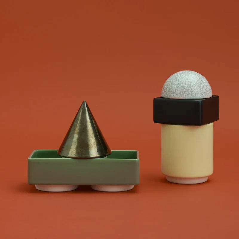 KNSTRKT by Studio Berg is a versatile Memphis-inspired piece that serves as a centerpiece, accessory holder, desk organizer, and more. Blending the principles of stackable industrial tableware with the bold, playful spirit of postmodern design, KNSTRKT is both functional and a striking statement of creativity and style.