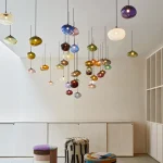 Shimmering and glittering like twinkling stars, STARGLOW combines ELOA’s smallest glass pendant lamps into a cloud of sparkling reflections. STARGLOW appears as a configuration, with 3, 6, 10 or more pendant lamps. Also STARGLOW’s impressions can be intensified all the more by simply increasing the number of elements. Due to its delicate size and Mini LED technology, STARGLOW can be used in many areas of the home to create impressive effect. Whether in the lounge area or at the dining table, STARGLOW captivates with its airy and glimmering presence by its unique colors and myriad of possible lighting effects.