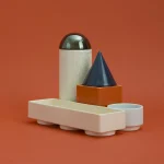 KNSTRKT by Studio Berg is a versatile Memphis-inspired piece that serves as a centerpiece, accessory holder, desk organizer, and more. Blending the principles of stackable industrial tableware with the bold, playful spirit of postmodern design, KNSTRKT is both functional and a striking statement of creativity and style.