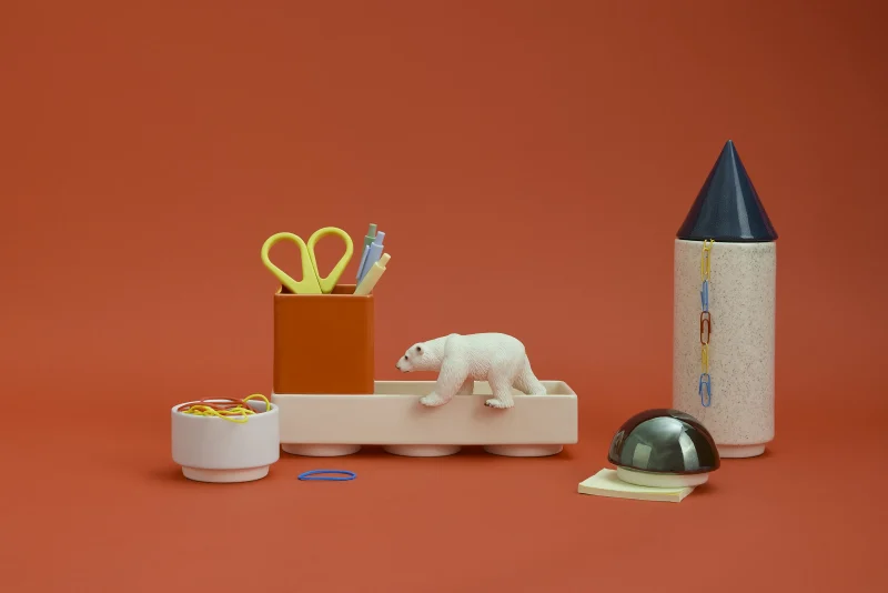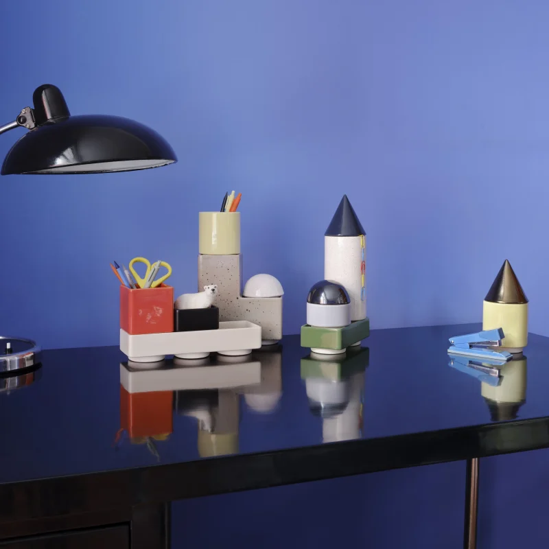 KNSTRKT by Studio Berg is a versatile Memphis-inspired piece that serves as a centerpiece, accessory holder, desk organizer, and more. Blending the principles of stackable industrial tableware with the bold, playful spirit of postmodern design, KNSTRKT is both functional and a striking statement of creativity and style.