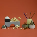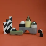 KNSTRKT by Studio Berg is a versatile Memphis-inspired piece that serves as a centerpiece, accessory holder, desk organizer, and more. Blending the principles of stackable industrial tableware with the bold, playful spirit of postmodern design, KNSTRKT is both functional and a striking statement of creativity and style.