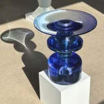 Each sculpture, crafted from dyed acrylic, is an artistic expression and a functional table. Its translucent layers and vibrant hues reflect the delicate interplay of light and emotion, inviting connection and reflection.