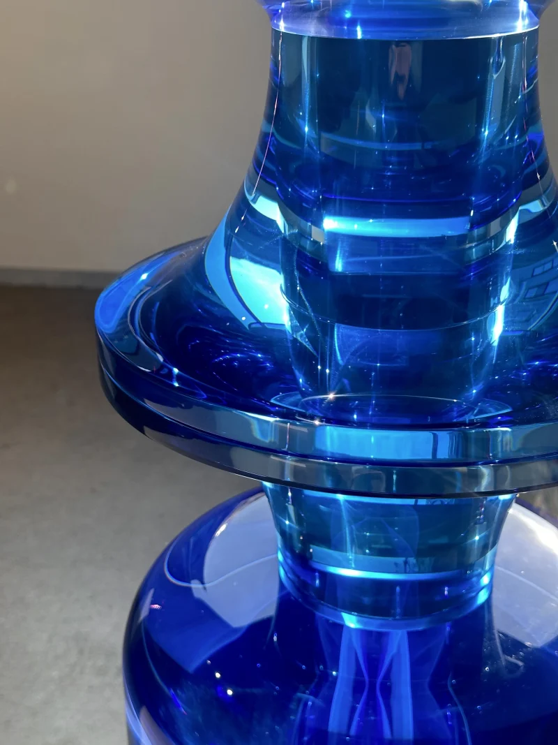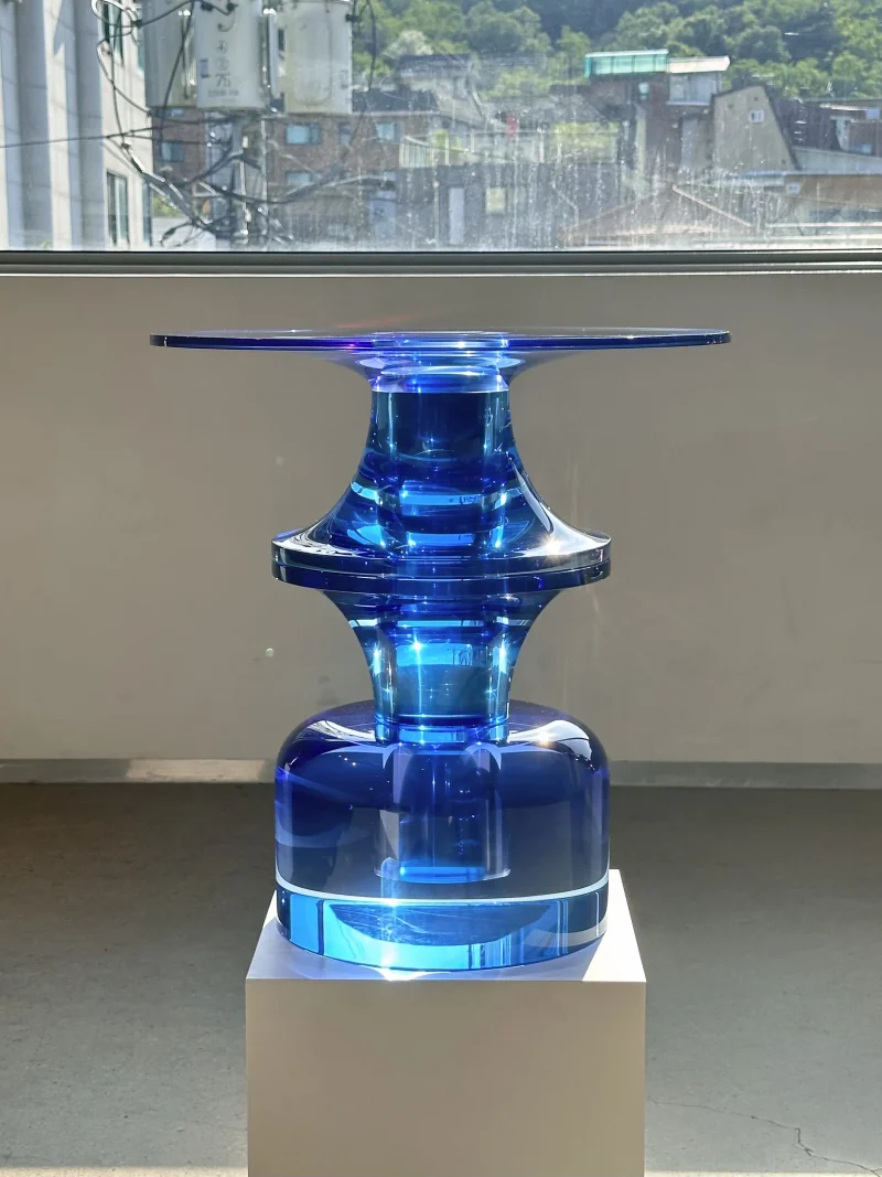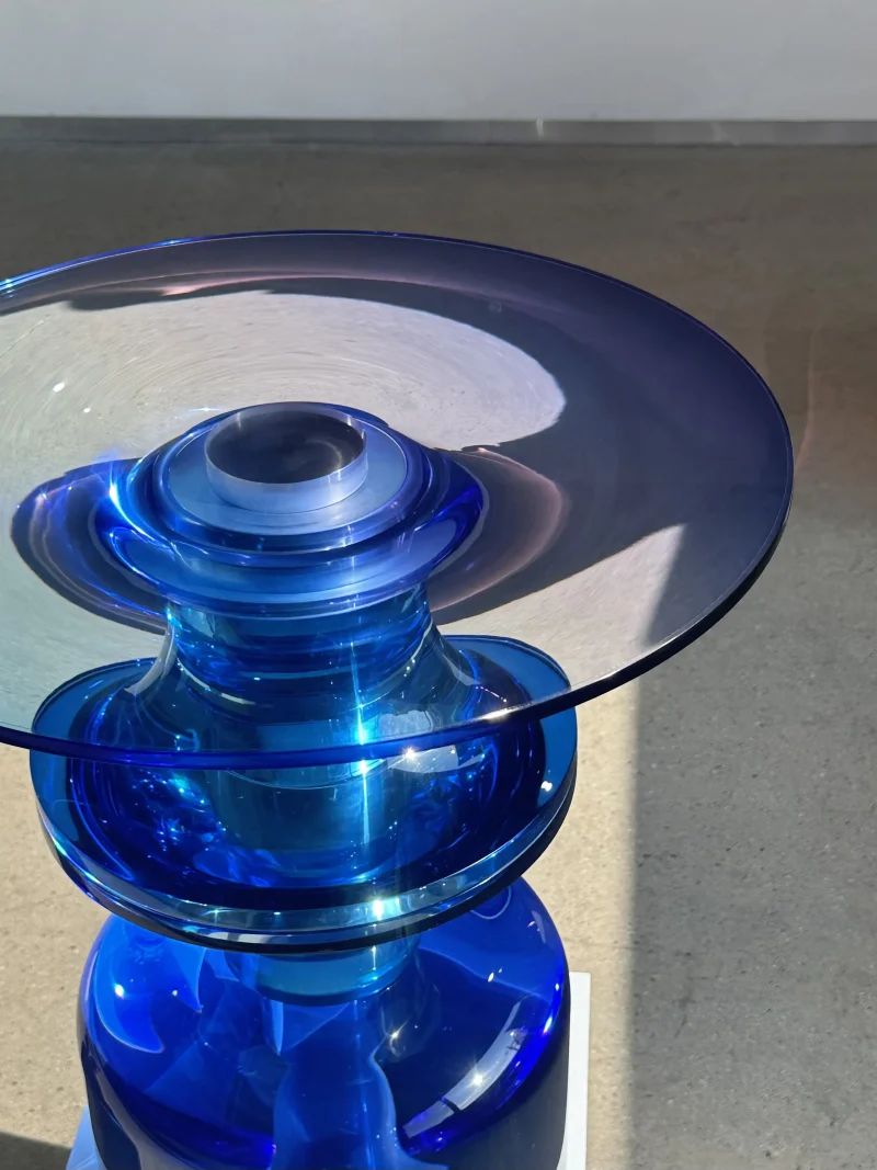 Each sculpture, crafted from dyed acrylic, is an artistic expression and a functional table. Its translucent layers and vibrant hues reflect the delicate interplay of light and emotion, inviting connection and reflection.