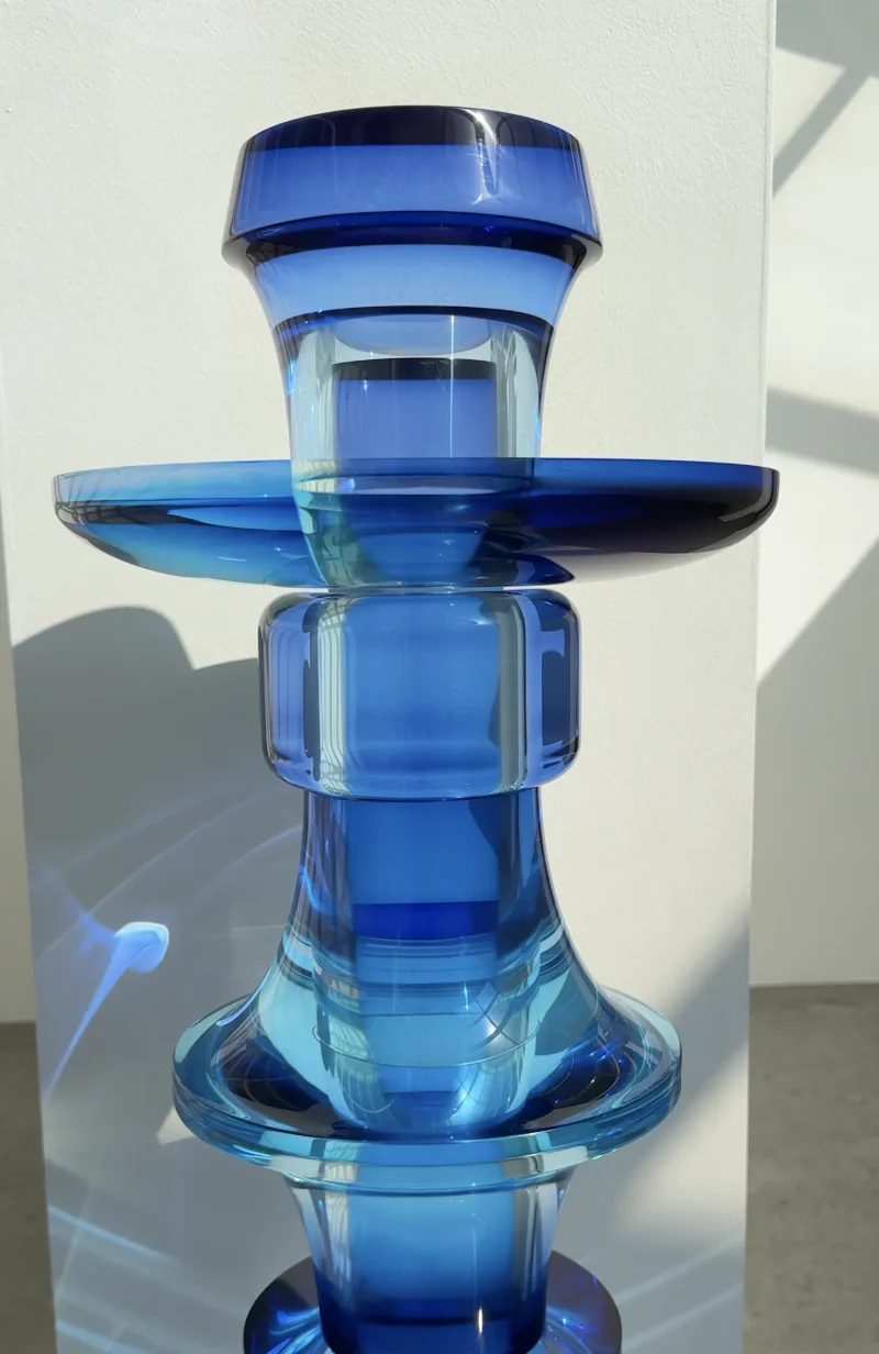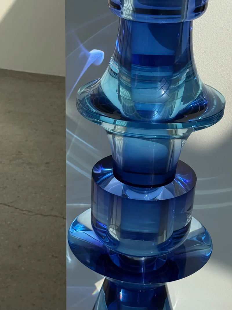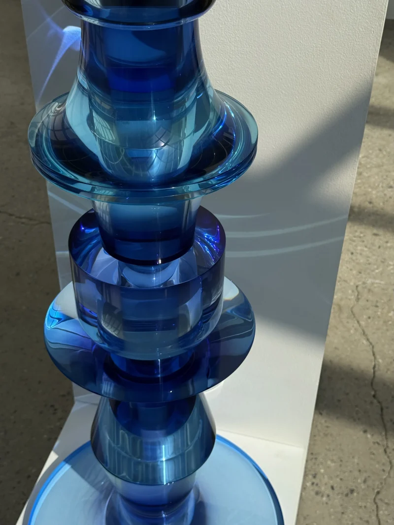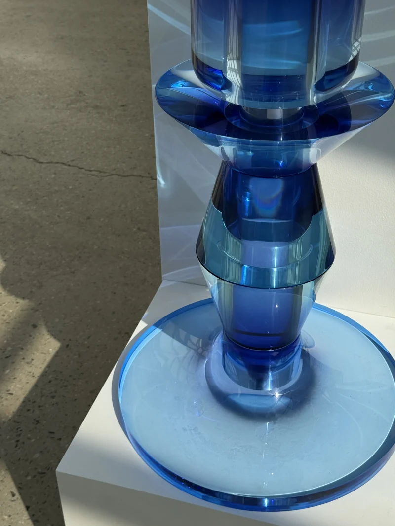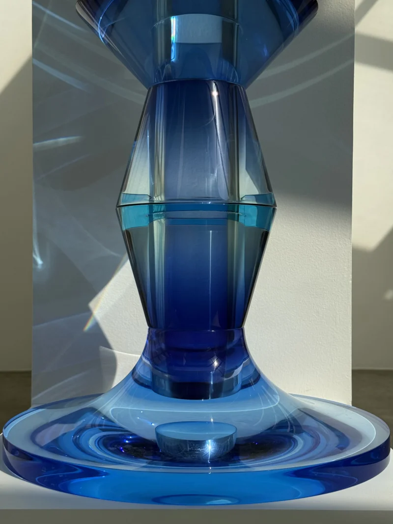 Each sculpture, crafted from dyed acrylic, is an artistic expression and a functional table. Its translucent layers and vibrant hues reflect the delicate interplay of light and emotion, inviting connection and reflection.